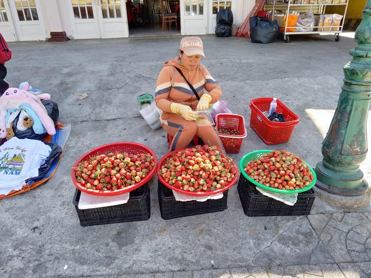 土地柄、海産物よりも山や畑で取れるものが多かったように感じました。小ぶりの苺を3パック購入しましたが、100000VND(600円程度)と驚愕の安価でした。市場には数か所の出入り口があり、市場周辺にも所狭しと陳列された品物と見比べて選ぶことができました。コンパクトな市場で公衆トイレも完備され、スアンフーン湖にも徒歩数分でアクセスでき、滞在中は毎日通いました。