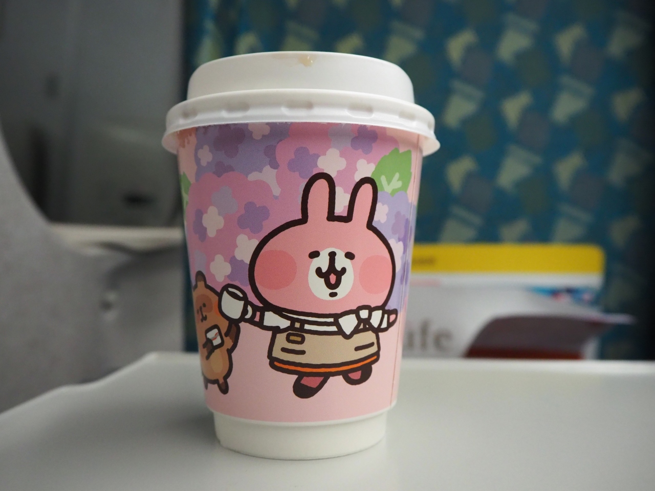 車内もカナヘイ仕様になってて、車内販売のドリンクカップなどもカナヘイ仕様になってました