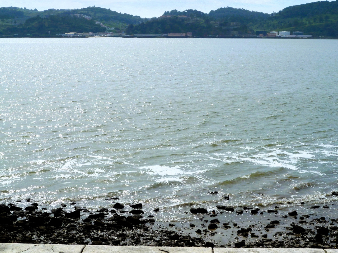 水源はスペイン領→リスボン市ベレン地区で大西洋に注ぐのが<テージョ川>です。なのでリスボン川沿いに監視所[ベレンの塔]が! また、ベレン地区からアルマダ地区を眺めれば海岸の香りが(波/砂も)…果てしない大西洋;大航海時代ですね☆