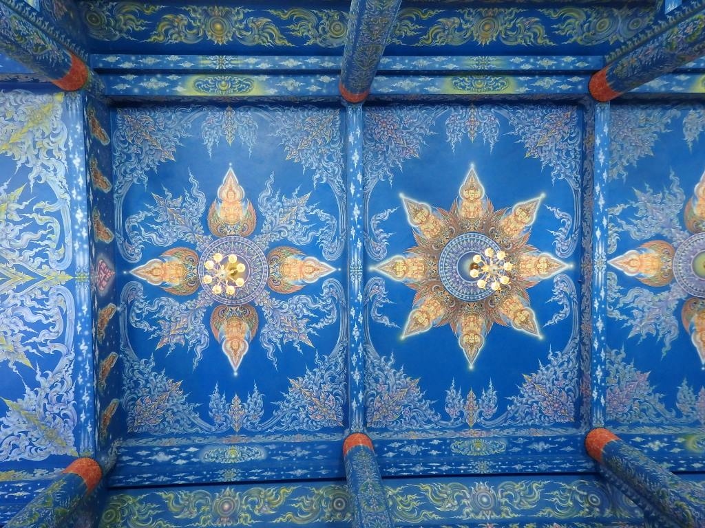 「白い寺院」のお弟子さんが作ったお寺とのこと。雲ひとつない晴天の日、青い寺院は空と一体化し、とても映えました。周囲の噴水も青く、本堂の中も青く、売店では青い(多分バタフライピーで着色)カオニャオやナッツ、ゴマ、ココナッツも盛り付けられた、青いアイスクリームもありますので、ぜひお薦めです。