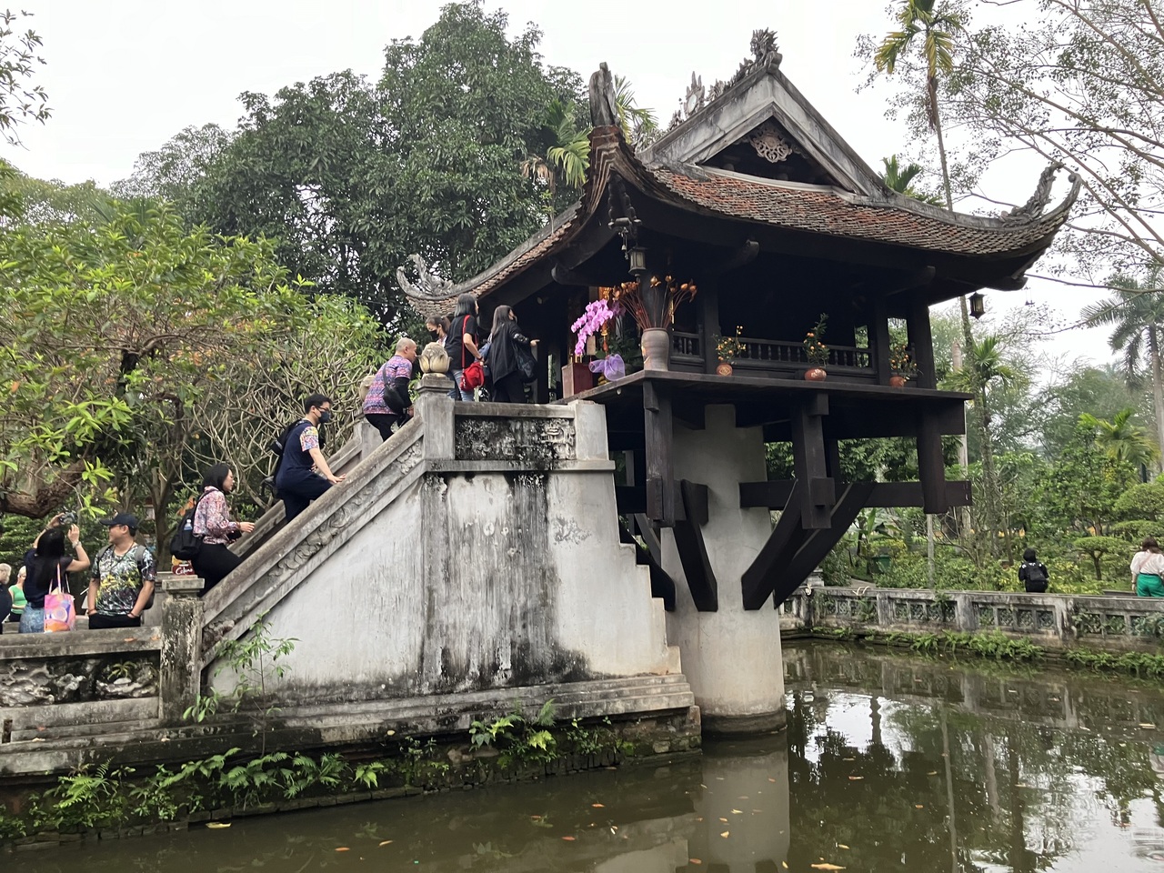 かなり小さなお寺で、ホーチミン廟と同じ入口のため、敷地へ入るのに手荷物検査がありました。Google マップで示される入口よりも東側に本当の入口があります。池の中に浮かんでいる小さなお寺で、珍しい形です。