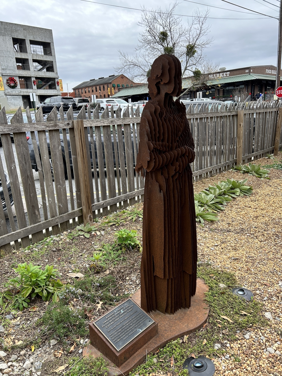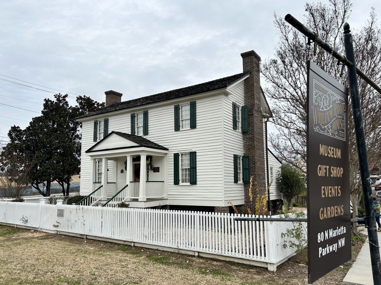 1850年代のマリエッタの中流階級の生活様式を遺す、アトランタ地域で最も古く保存状態の良い家屋の一つとのことです。最初の住人であるハンナ・ルートとウィリアム・ルートにちなんで名付けられたそうです。中には入場せず屋外だけを見ましたが、主屋の横には奴隷が住んでいた1830年頃の丸太小屋(復元かと思います)があったり、その横にはコブ郡の歴史団体がケネソー州立大学と共作しかつての奴隷の彫刻があったり、奴隷制を省みる側面も見受けられました。