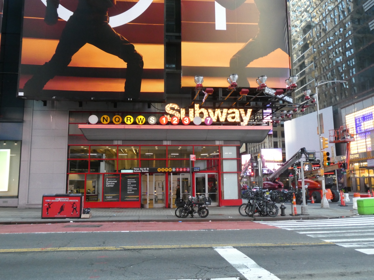 タイムズスクエアの駅入り口は、分かりやすく迷うことはありません。