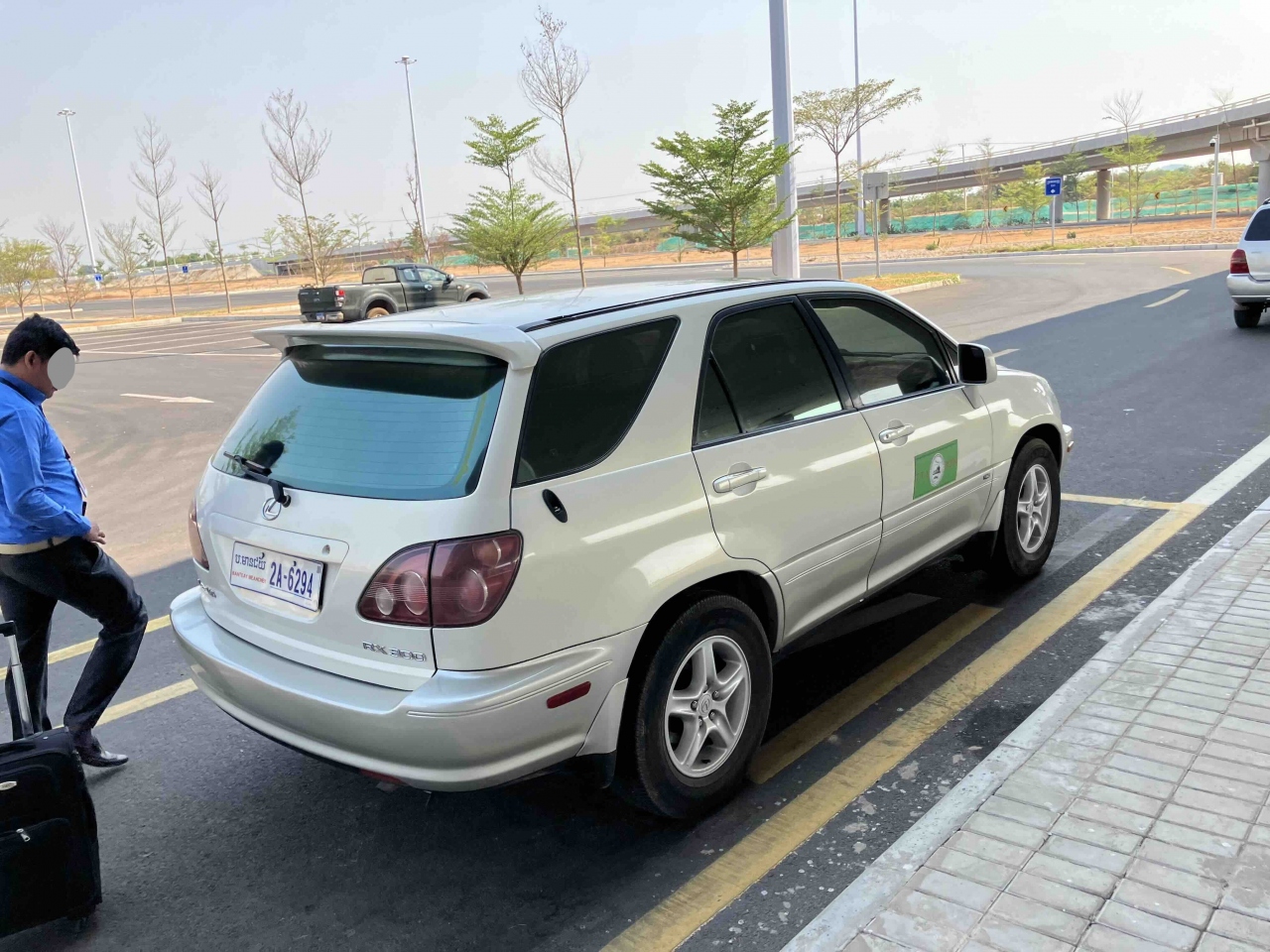 新しいシェムリアップ国際空港からシェムリアップ市内のホテルまでタクシーで移動しました。空港バスもあるようですが本数が少ないため、タクシーにしました。空港を出てすぐ左に行くとバスとタクシーのチケットを販売する建物があるので、そこで現金で購入です。35ドルです。市内までは片側1車線の道をひたすら進んでいきます。
