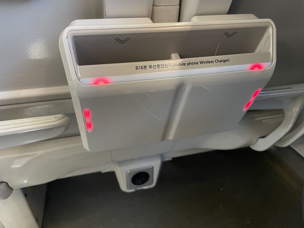 普通席利用でしたが座席は広く、置くだけ充電.USBポート.通常の電源コンセントも備えてあります。