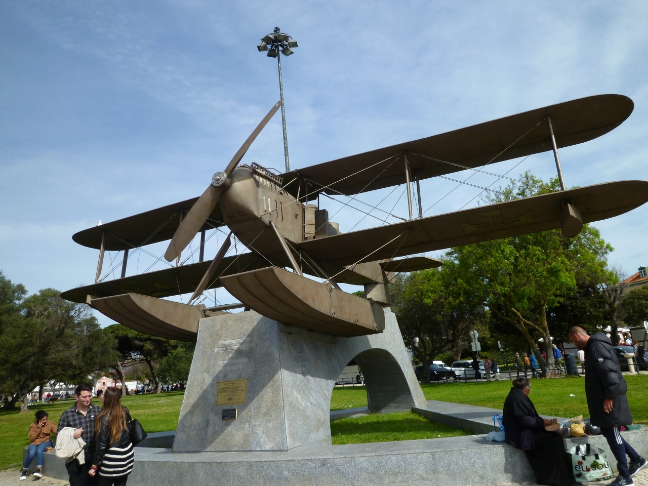 `ベレンの塔`を見るためにテージョ川沿いのトーレ デ ベレン庭園を歩いたら[複葉の水上飛行機]が;1922年、リスボンからリオデジャネイロまでを横断した水上飛行機[サンタ クルス号]でした! `ポルトガルの海軍軍人の二人;<Sacadura Cabral氏とGago Coutinho氏 が初めて飛行したので記念碑(Monument)>でした☆