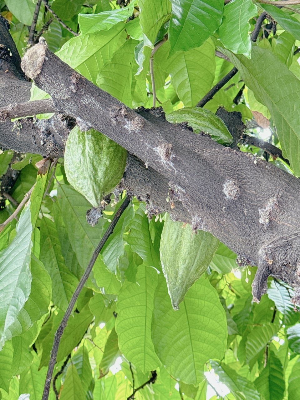 店の外にはカカオの木があり、実際に実がなっていました。