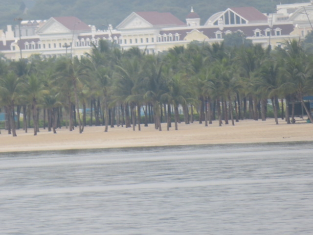 10月ということで、「誰もいない海」でした。取り立てて何もない普通のビーチです。ハロン湾のクルーズ船から見ると、砂浜・ヤシの木の後ろに、赤い屋根の付いた白壁の家が見えて、このコントラストが奇麗でした。浜辺に行くより、船から見る方が素敵です。