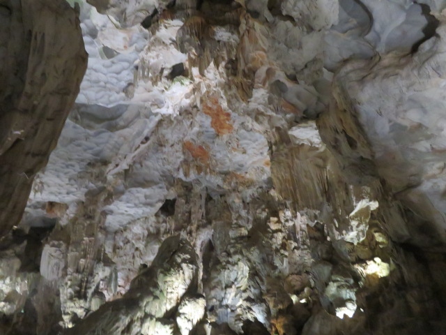 ハロン湾クルーズは、ハロン湾に点在する奇岩を眺めるだけではなく、こちらの鍾乳洞に立ち寄ります。洞内は、ライトアップされていて、見やすいようになっています。色々な形の岩がありましたが、大きなハチの巣のような岩が印象的でした。