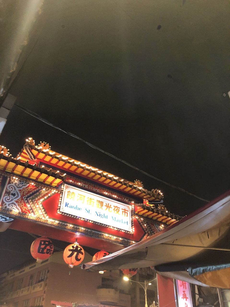 前はもっと活気があった気もするが、空き店舗もちらほらありました。ビブグルマンをとっている屋台やお店は相変わらずの大人気でした。近くにあるお寺が、あまりにもネオンが明るく夜市の看板よりも目立っていました。