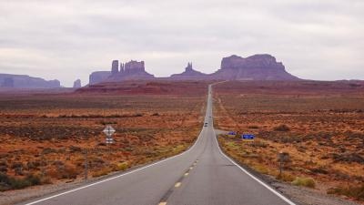 メキシカンハットからモニュメントバレーへの入り口、まっすぐに伸びた道の先にビュート(孤立丘)が林立しているのが見えてきたときは感動する