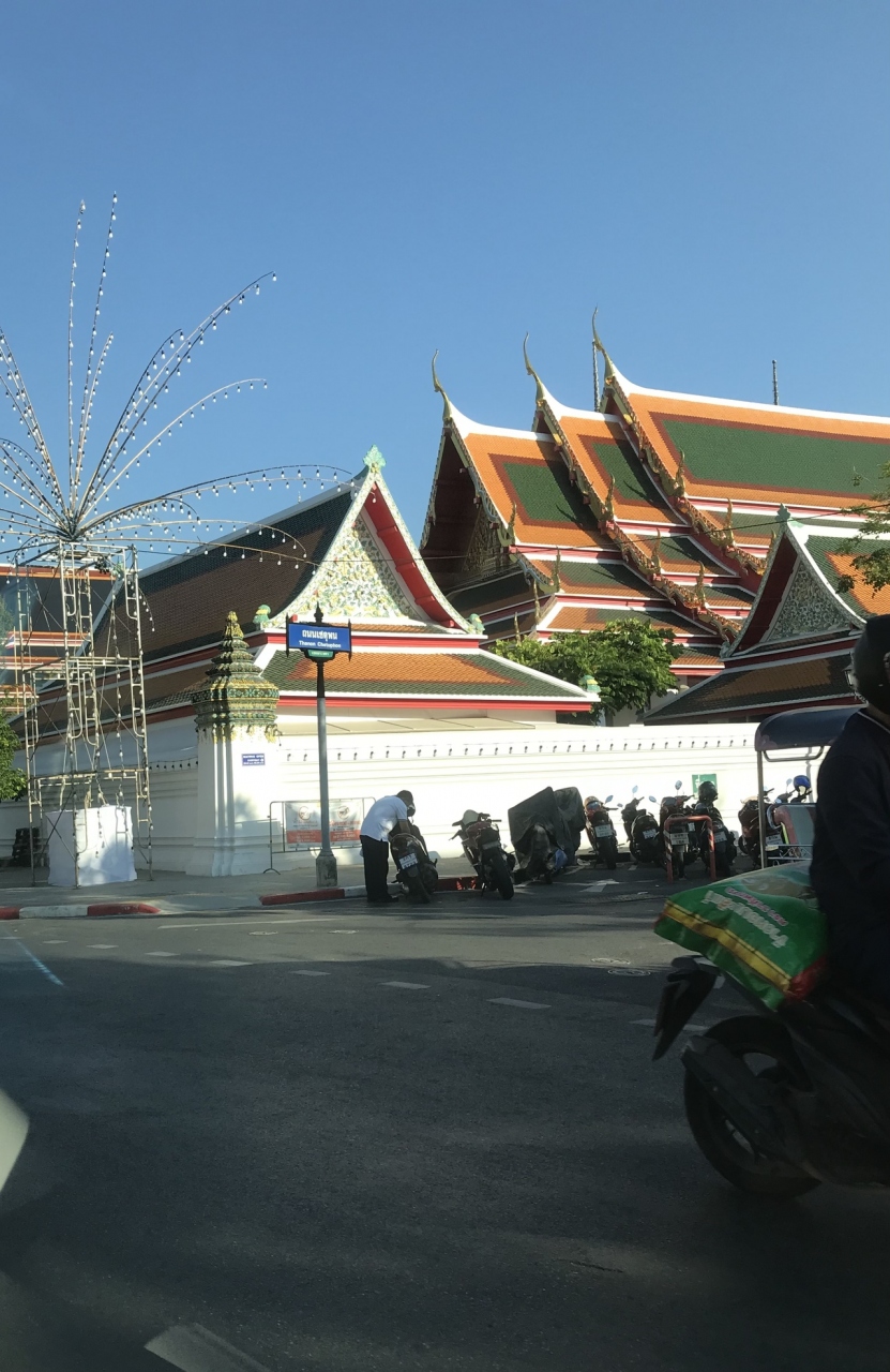 ワットプラケオとワットポーに挟まれた東西の通りがタイ・ワン通りです。朝はまだ空いていますが昼過ぎに通った時は人も車もトゥクトゥクもバイクも多くてカオスでした。ここで流しのタクシーを拾おうとすると130バーツの距離を200や400とメーター使おうとせず吹っかけてくるんでgrabでタクシー呼ぶ方がいいです