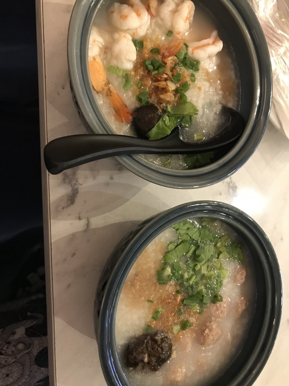 制限エリア外にはフードコートやお馴染みのチェーン店含むレストランがあり、制限エリア内にも3、4軒ほどありました。早朝だったので制限エリア内でお粥を食べました。少し割高でしたがおいしかったです。エリア外のフードコートは安いですがテーブルが汚いのでウェットティッシュ推奨。レストランはホールスタッフが多数いるので綺麗です