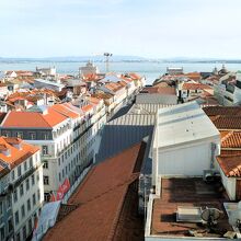 眺望に、正面にサン・ジョルジェ城/海側はアルファ丘陵の段々から平面の建物群が並んで,…`赤茶色の屋根と白壁の建物群`が一つだけ屋根も白いです(世界遺産に認定しなかったのは随処に,?)
