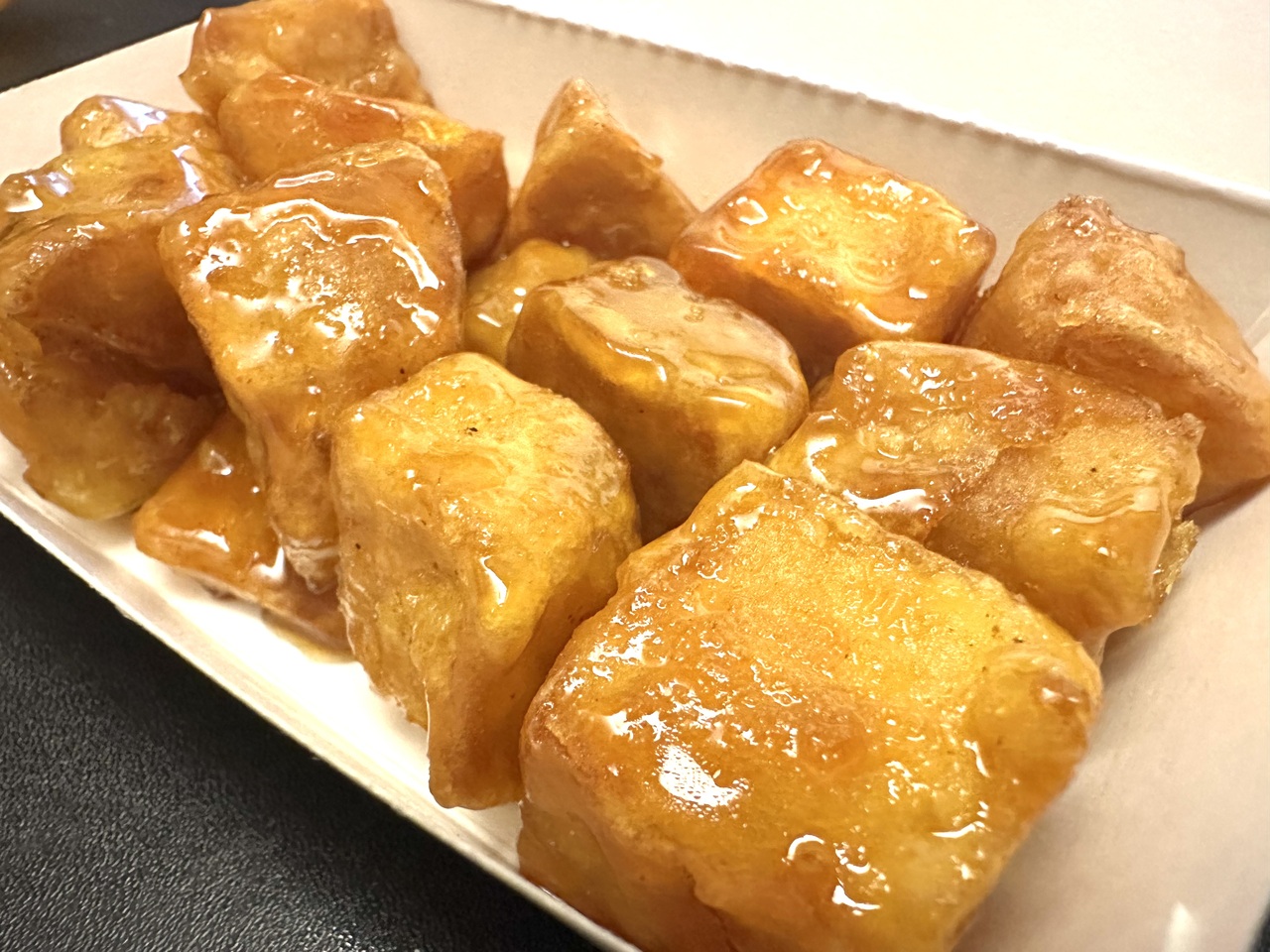 黒糖を使っているのではないかと思われるほど(次回、店員に確認予定)、コクのある甘味の大学芋。一人で食べ切れる量なのは良いが、60元もするのは高すぎるように感じる。でも、最近の物価高では仕方ないのかもしれない。いずれにしても、また買いに行きたいと思う味。大学芋の他に、芋チップなどもあり、芋好きはぜひ立ち寄りたい店だ。饒河街觀光夜市の西側入り口のすぐ近くにある。