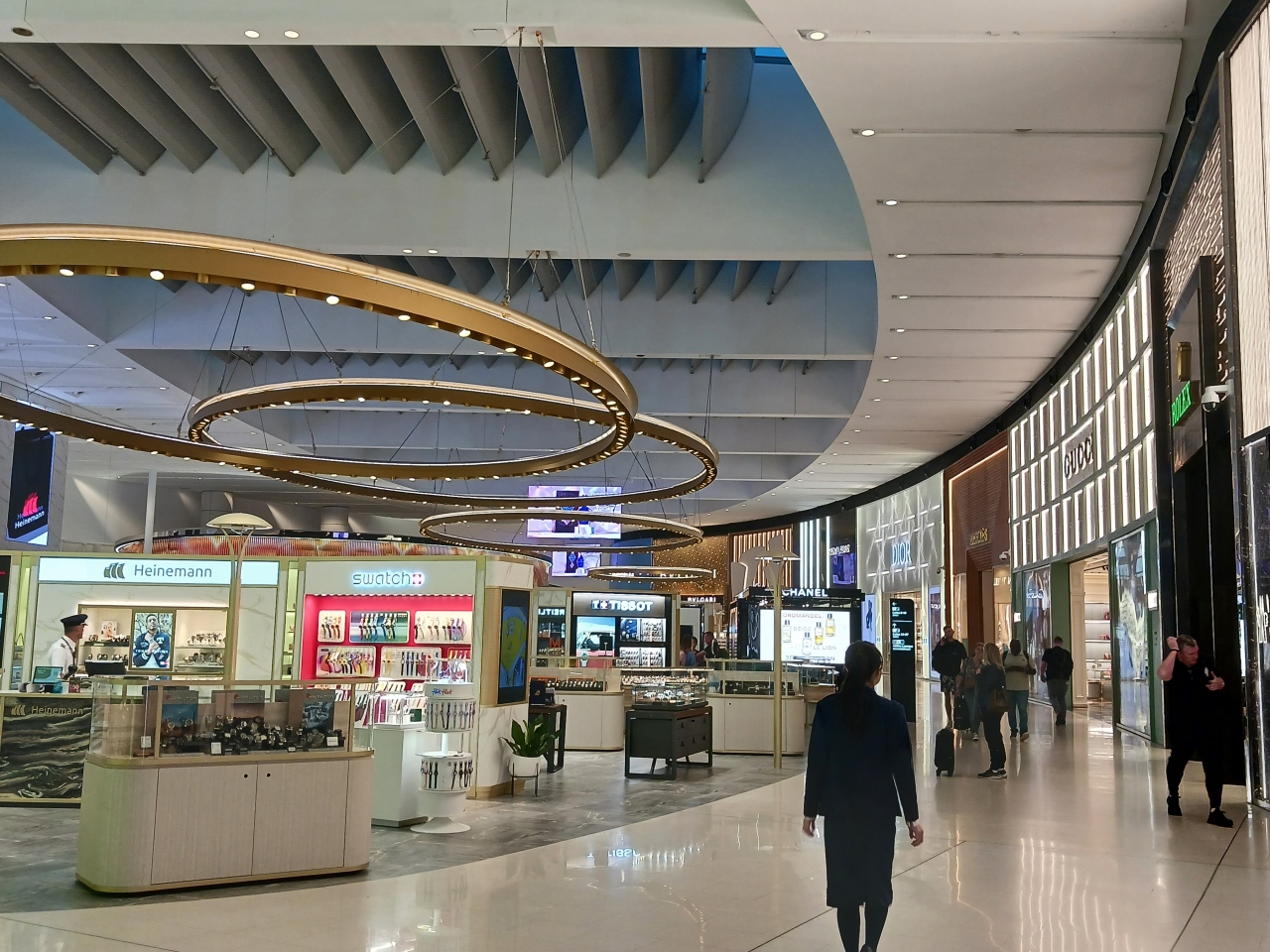 出国の際は、高級ブランドからケンタッキーみたいな手軽なお店まで、さらにバーなんかもあったりして空港は飽きません。飽きてしまっても広場を囲むようにお店があり、その広場が休憩スペースになっていて開放的です。