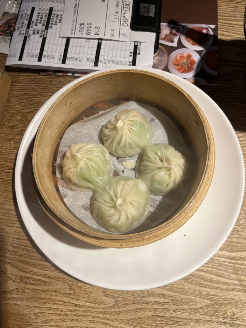 本店の雰囲気とは違う、おしゃれなレストランと言ったお店でした。数種類の小籠包がありましたが、ハーフサイズ4個でもオーダーできました。ひとりだったので、ハーフサイズは助かります^_^3種類食べられました。肉汁がじゅわっと出てきて美味しかったです。10%のサービス料がかかります。