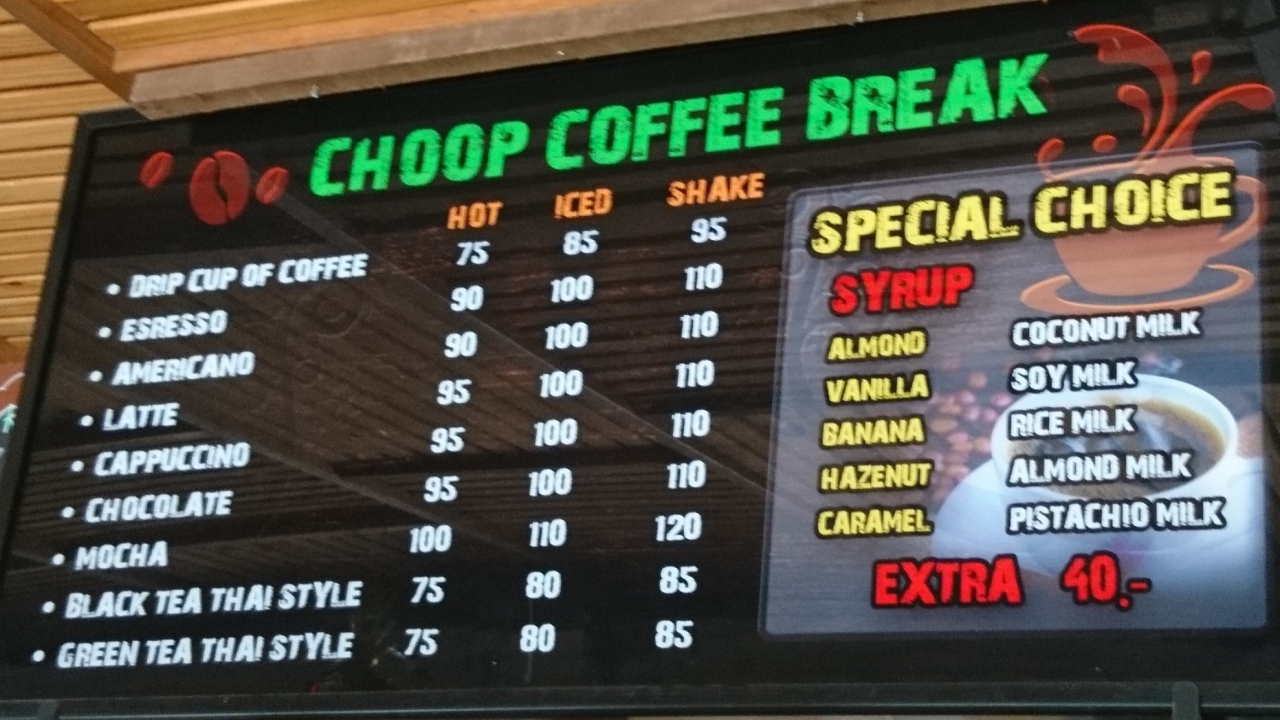 朝、ホテルの朝食で出てきたコーヒーが好みに合わず、美味しい珈琲を飲みたい欲で周辺をウロウロ。この辺りは、Ao Nangから日帰りで来るツーリストが多いので、ほとんどのお店が、ゆっくりお昼近くにオープン。通りを歩くも、まだ開店前で準備中のお店ばかり。どこかないかなぁ...で、発見!こちらのカフェが開いていました。