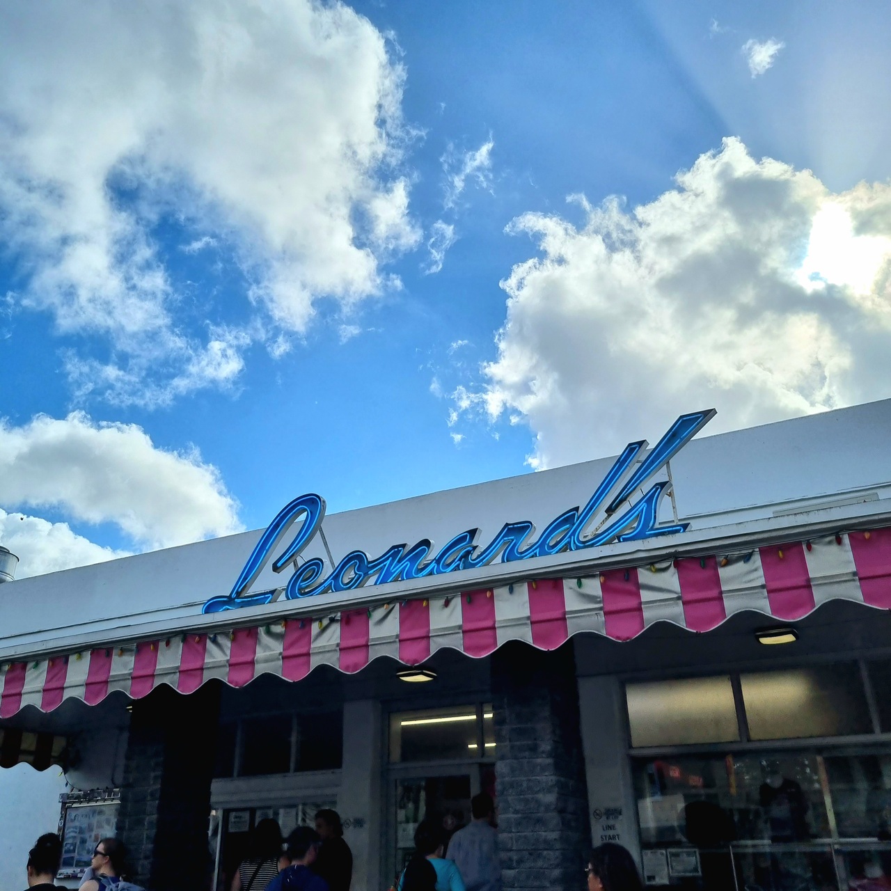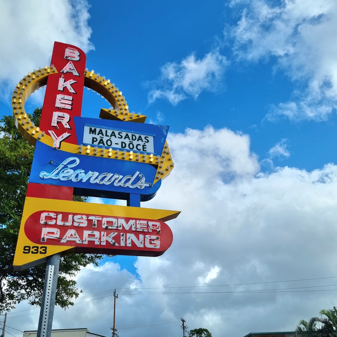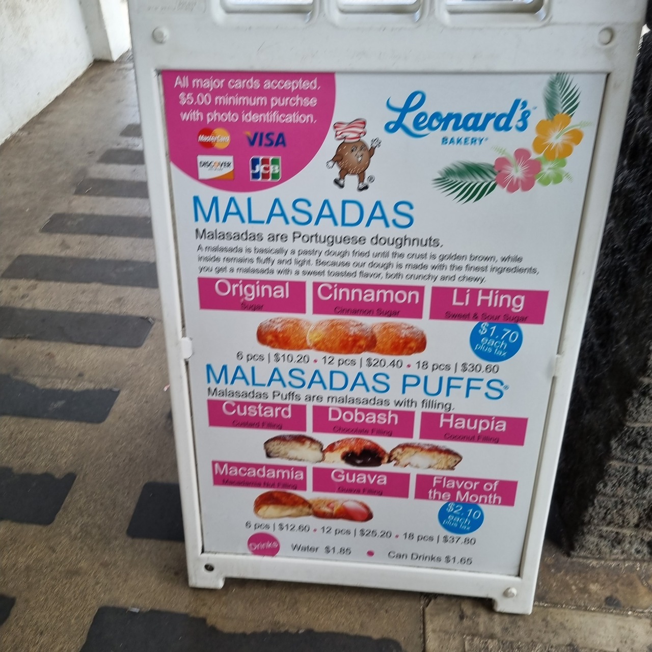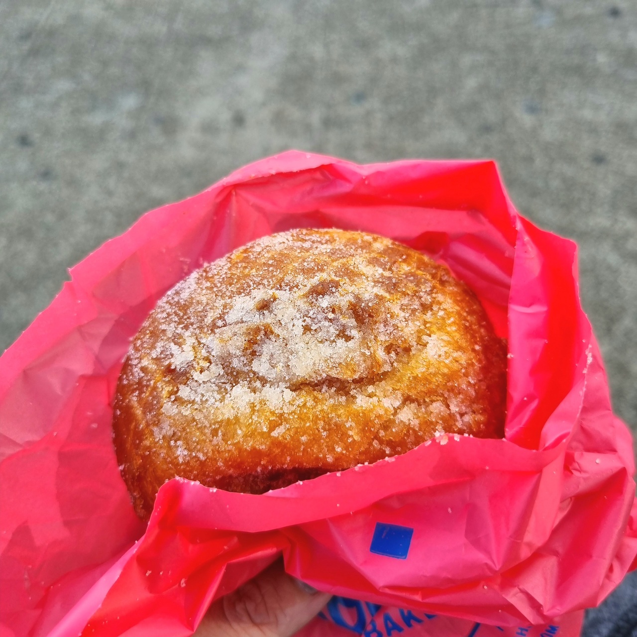いつも人が溢れていて人気のマラサダ店。注文は店内で行い、商品は外で受け取ります。店内からは注文の列が伸びていて、10分ぐらい待ってオリジナル1個を注文。カードは5ドル以上しか使えないので現金で支払います。