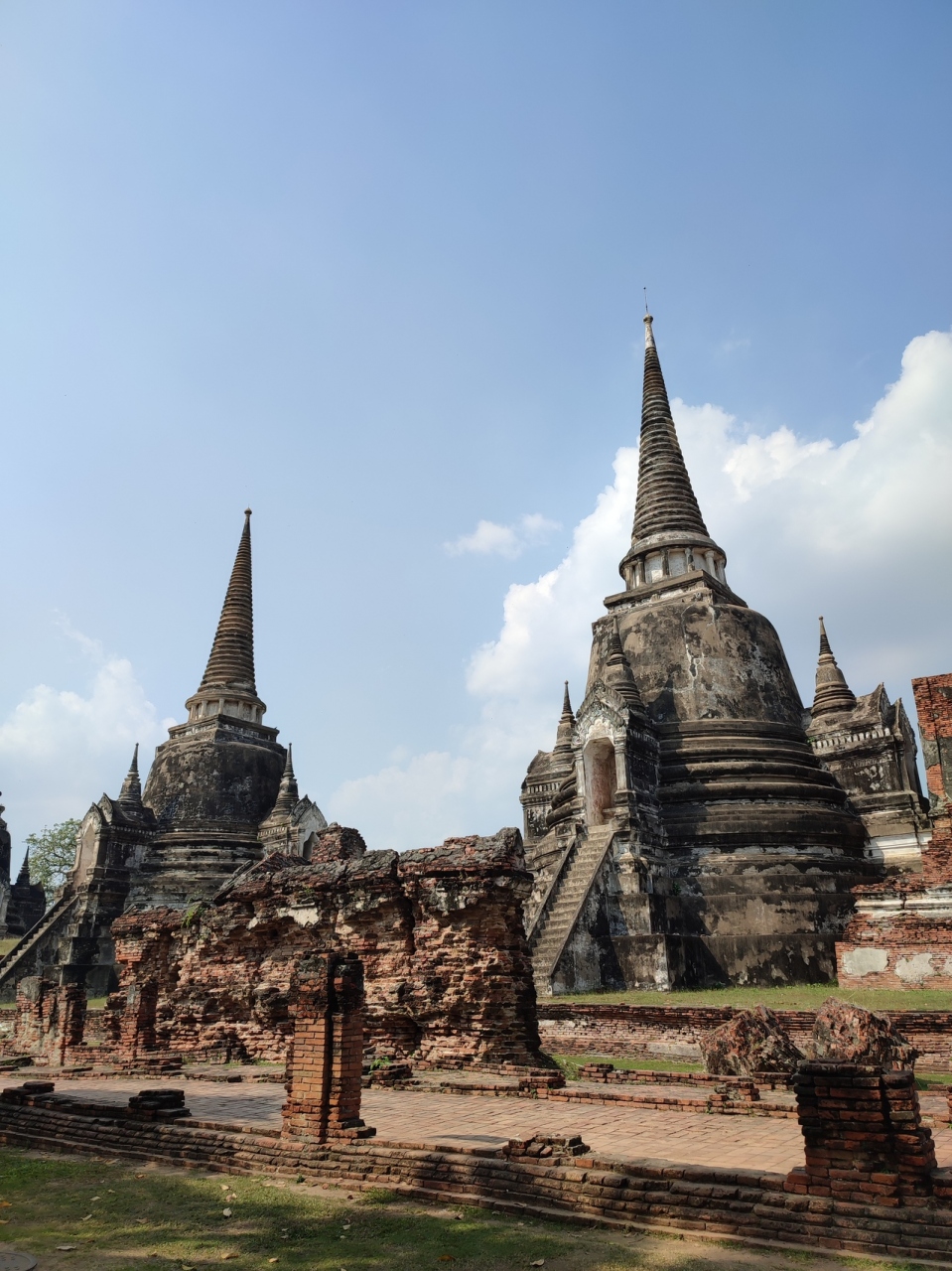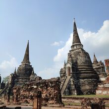 重要な人物の遺骨などがが納められている仏塔をタイ語でチェディといいますが、アユタヤは古都だけあって多くのお寺があり、その分チェディも多いです。保存状態も様々で、ワットプラシーサンペットのものはさすがに有名なだけあって綺麗でしたね。