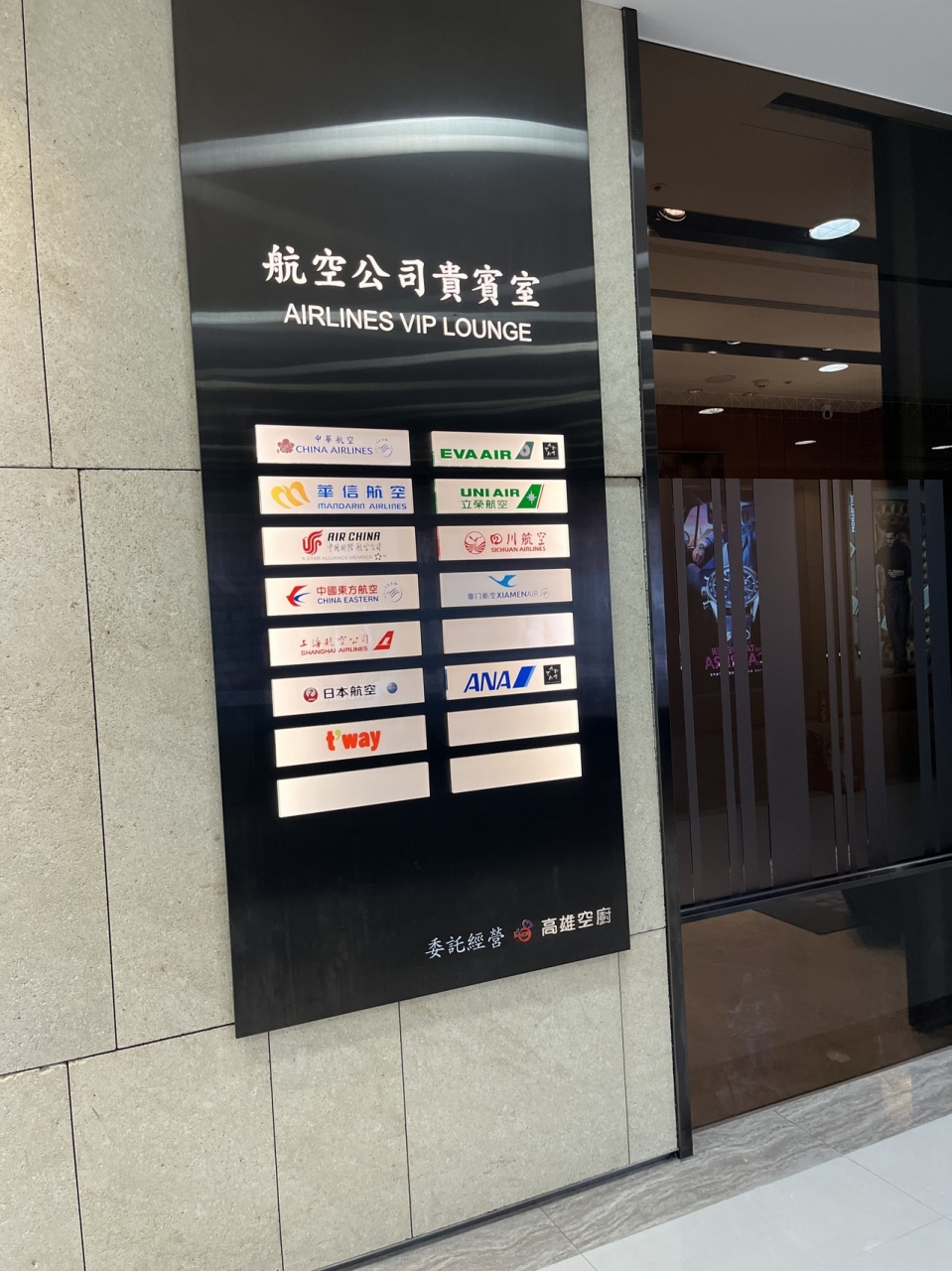 航空会社共通のラウンジなので、出発便の多い午後にはいつも混み合っています。スタッフの方が、アナウンスをして、荷物を椅子に置かないように案内しています。