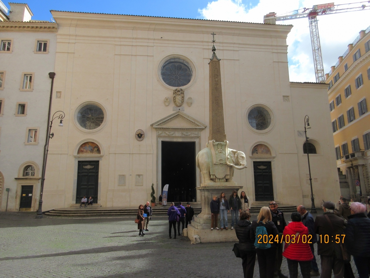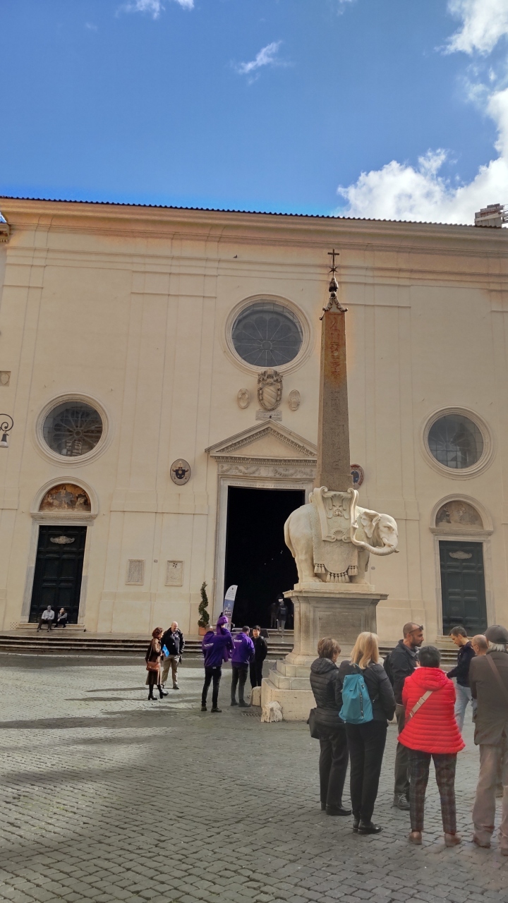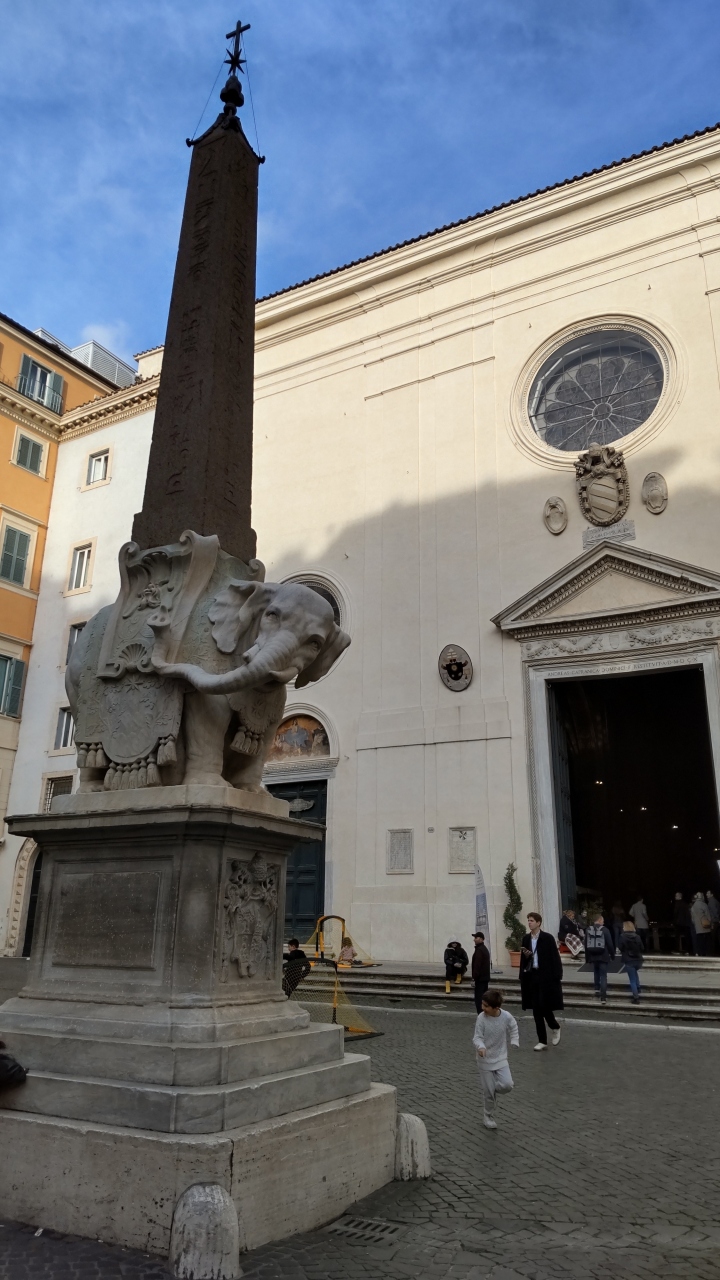 広場の中央には、ベルニーニが教皇アレクサンドル7世のために建てた象の彫刻があり、その上にはオベリスクが乗っています。