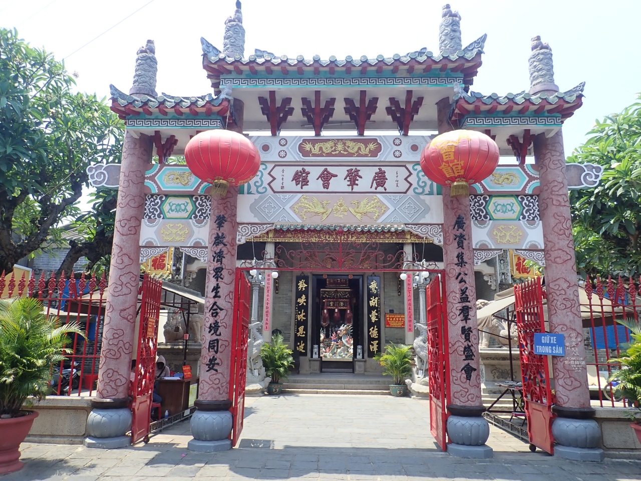 チケットで入れる場所です。華やかな門があるので、すぐわかります。中に入ると龍などの装飾物が多く飾られて、見応えがあります。ベトナムと中国との関わりを感じるところです。色とりどりの壁画など鑑賞し甲斐があります。