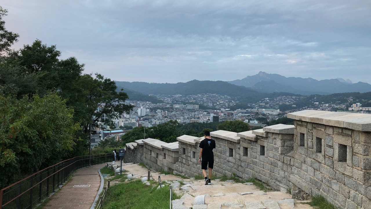 昔のソウルは、壁に囲まれた城郭都市でした。現在も、城郭が残ったり、復元されている区間があります。城郭沿いに、ウォーキングすることも可能です。写真は、東大門から駱山公園にかけての城郭道です。眺めも良いです。