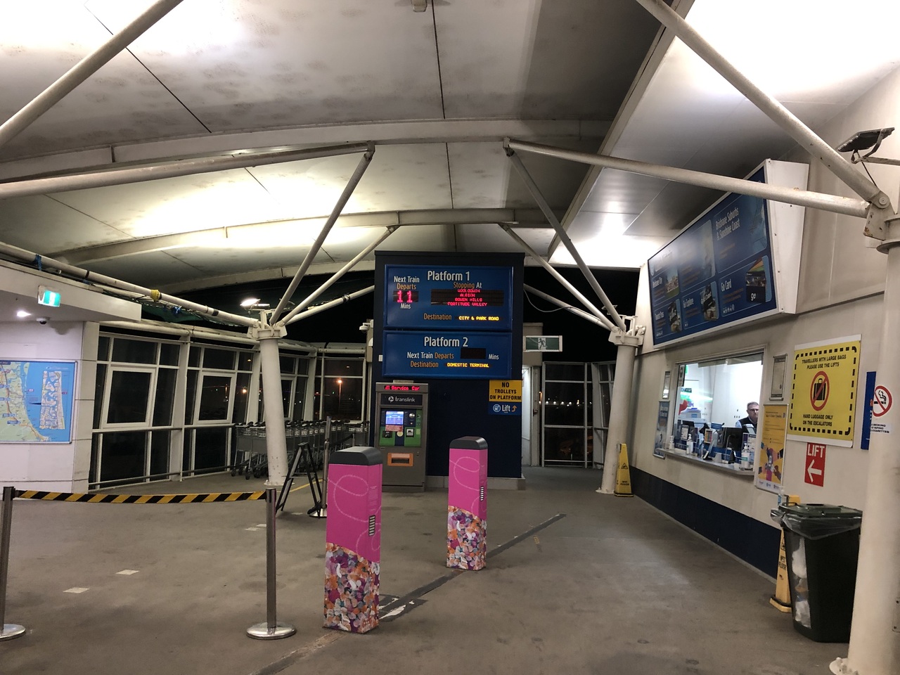 平日&週末・祭日ダイヤでもブリスベン国際空港国際線ターミナル駅を終電が22:08発と早いので国内線と国際線で遅い便でブリスベン国際空港に到着する際は移動手段を考えておきましょう。