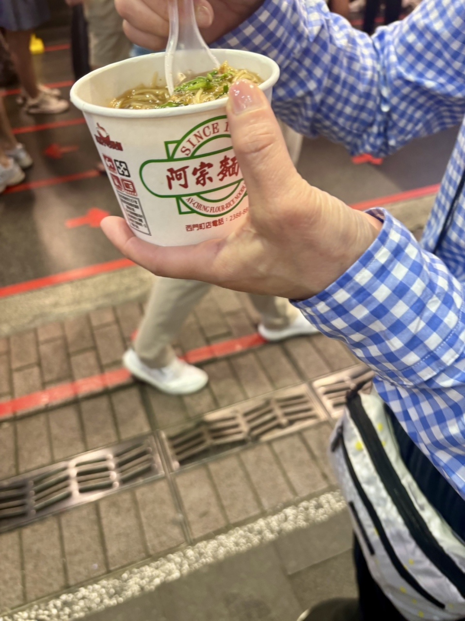 日曜日の夜7時ぐらいに西門へ行ったので食べました。行列していましたが、進むのが早く5分ほどで買えました。小椀60元。カツオ風味です。好みは分かれそうな味。調味料が置いてあるので味変できます。皆さん、店前で立って食べられてます。