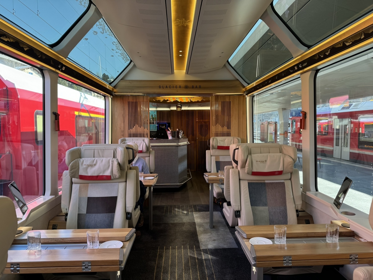 サンモリッツからツェルマットまでを8時間で走る氷河特急を、エクセレンスクラスで利用しました。料金は、1等席の乗車券に加えて約8万円。