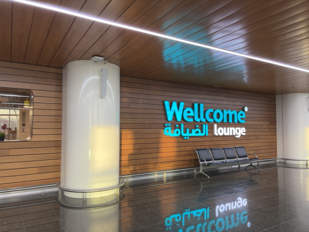 メディナから首都リヤドへの移動の際に訪ねました。さすがイスラム教第二の聖地の空の玄関口、空港前にも大変立派なモスクが備えられています。国際線側にはもちろんラウンジがありますが、ここは国内線側にもプライオリティパスで利用可能な、その名もWellcome Loungeがあります。当然アルコールはありませんが、最低限の軽食や飲み物があり、Wi-Fiは絶不調。受付スタッフに、ここ以外に飲食店はある?と尋ねると「ここしかない」。ゆえに、あまり早くに保安検査を抜けると店も少なく持て余します。