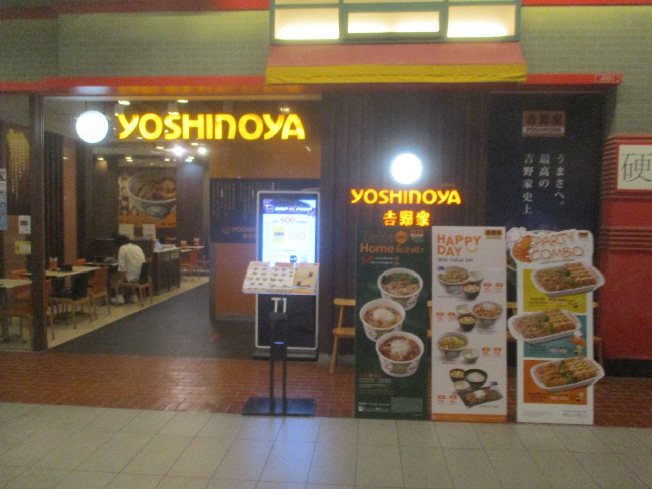 ターミナル21の4階の奥の方なので少し分かりづらい場所ですが、店内は結構広かったです。日本の吉野家よりファミレスっぽい雰囲気でした。お客さんは意外にもタイ人が多めでした。メニューは、牛丼、豚丼のほかにカレーや餃子などもありました。