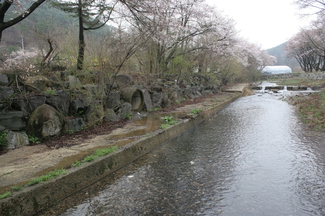建物の裏手には小川が流れ、春先の訪問だったので桜が川面に写り、まさにシャッターチャンス。