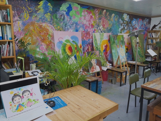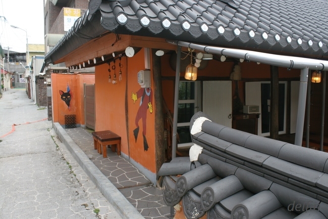 スンチャン(淳昌)の中心エリア、古い家屋の外壁をグラフィティやペントで色鮮やかにし、