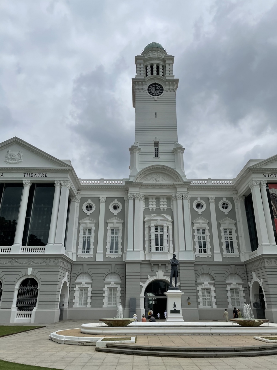 50メートル以上もある時計台がありコンサート会場があり、前庭には黒いラッフルズ像が建っていました。