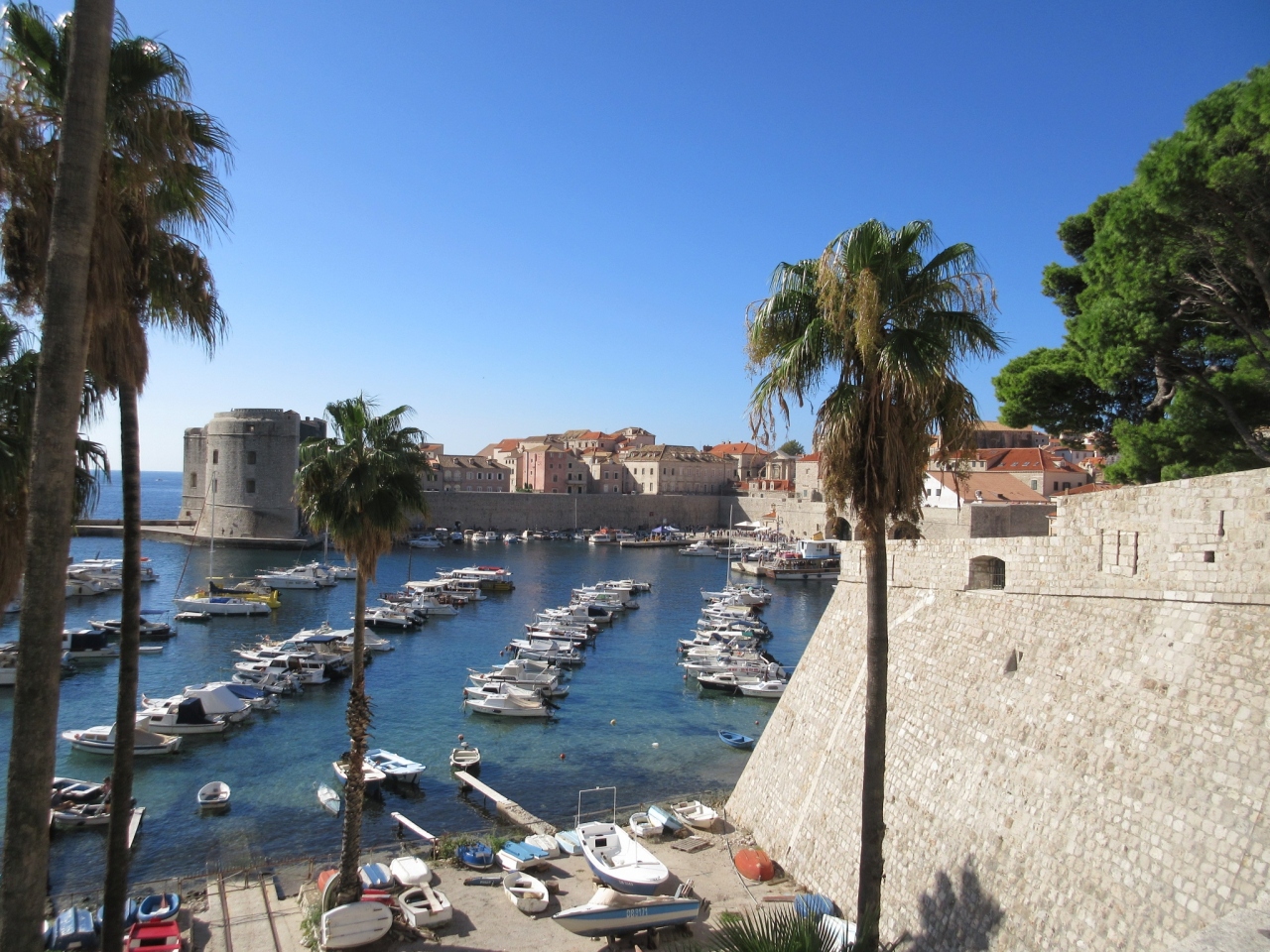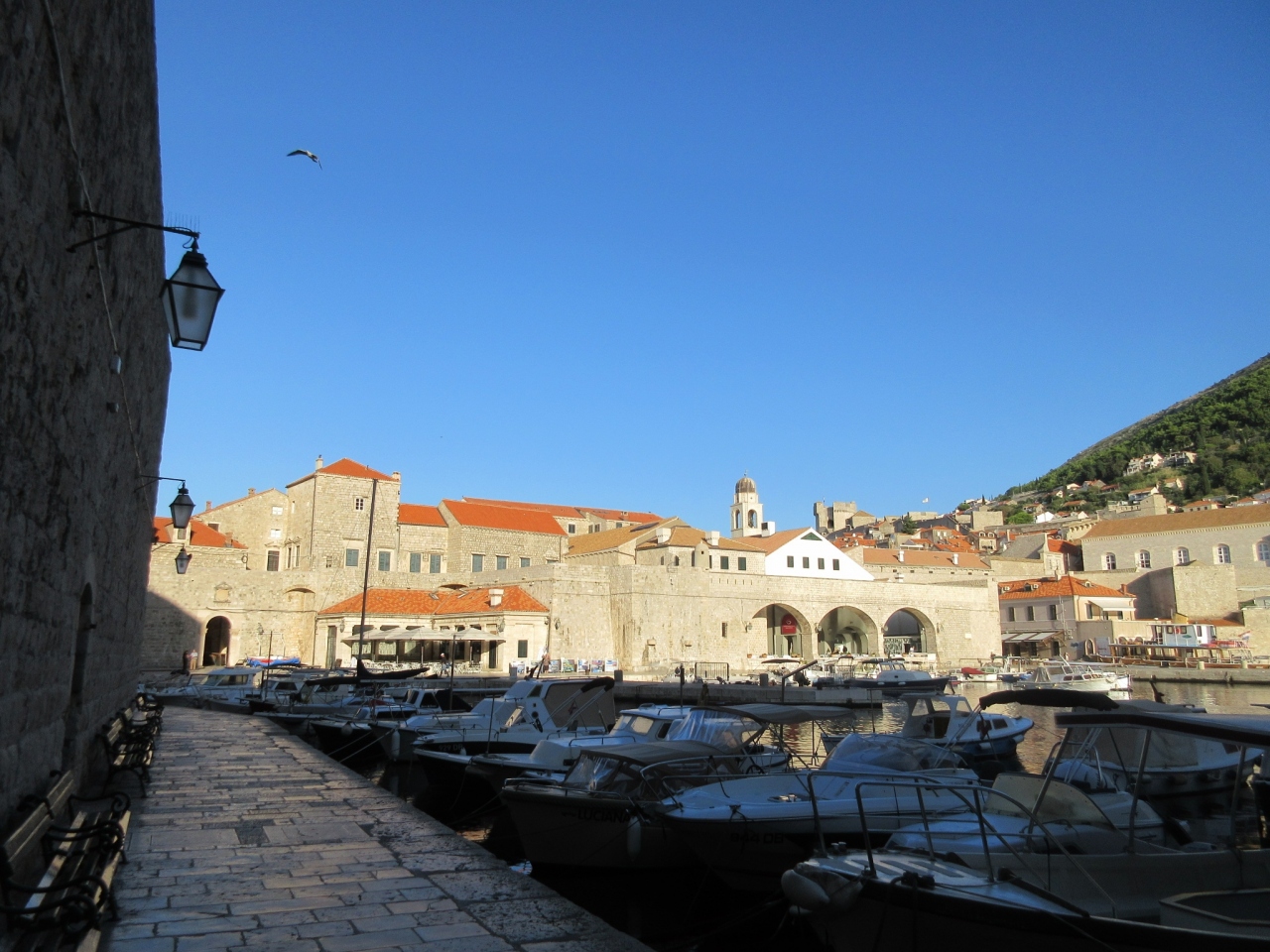 【ドブロブニク旧市街】の東側の端にある城壁のすぐそばにある港で、私が訪問した際には何艘ものボートやヨットが係留されていました。旧市街の城壁と【旧港】の上を何羽ものカモメが自由に飛び回り風情がありました。便数は少ないですが、空港近くにある港町Cavtatへの船もこちらから運行されており案内標識もありました。