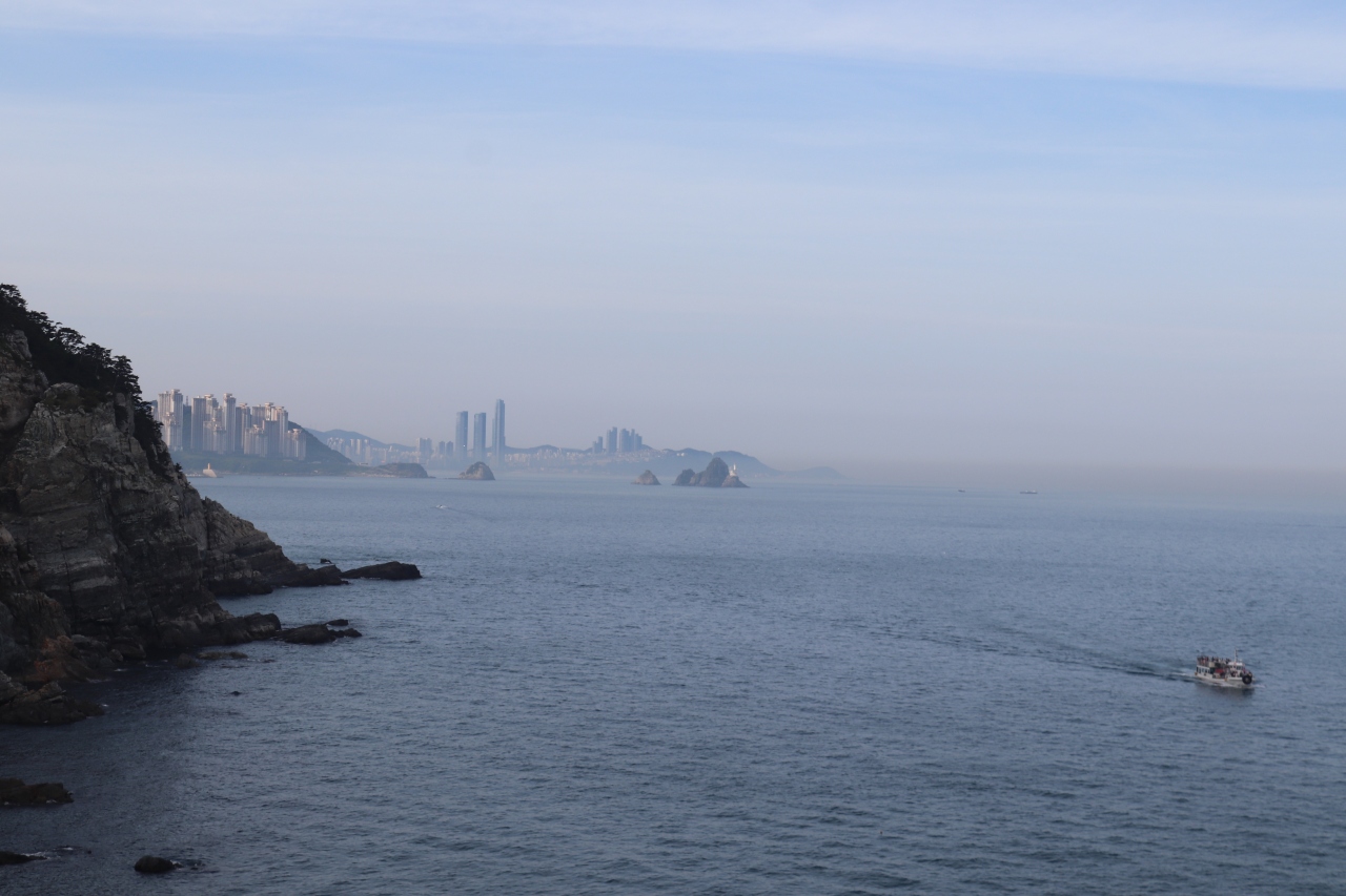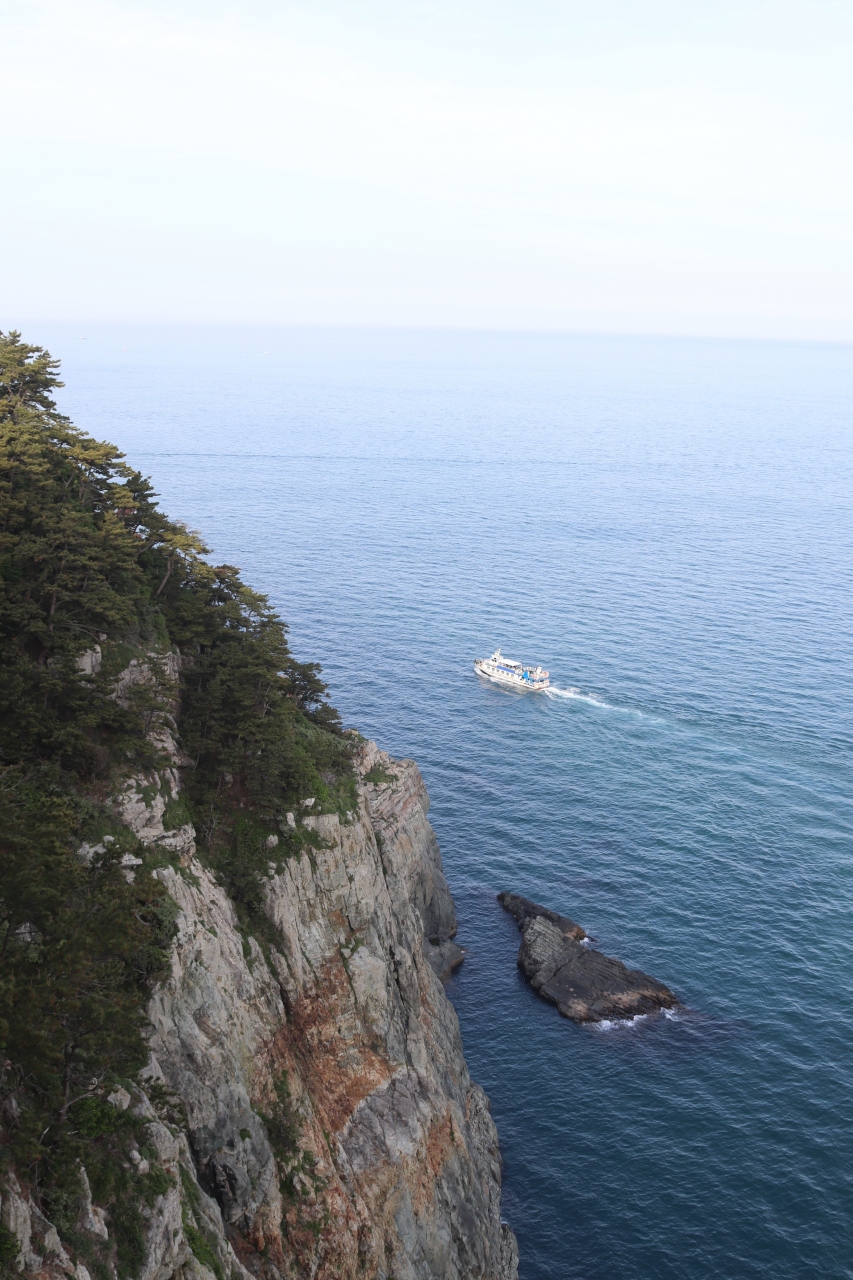 太宗台をタヌビ列車で巡りました。展望台より海を眺めると、岬廻りを満員の遊覧船が行き来していました。断崖のかなり高いところに展望台があるので、逆に遊覧船からの眺望は素晴らしいでしょう。次回のってみます。