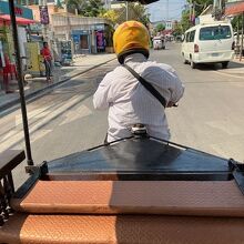 アンコール国立博物館へ行くのに利用しました。予定ではホテルから歩いて行くつもりでしたが、4月末のアンコールワットは茹だるような暑さで、とても歩いて行けるような状況ではありませんでした。Grabで見ると片道5ドルでしたが、そこに居たトゥクトゥクと価格交渉したら往復で6ドルなので、Grabは使いませんでした。交差点では信号機もないのに運転して感心しました。クーラーはありませんが、風が自然の扇風機でした。