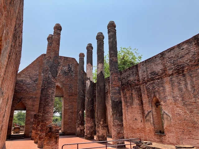 アユタヤの見どころの多くは川の西側に固まっていますが、ここは川の東側にあります。アユタヤ観光はトゥクトゥクをチャーターしたのですが、川の西側に集まっている見所を訪れた後、アユタヤ駅に戻る前にここを訪れました。パゴダも修道院も半分以上崩れてしまっていますが、規模はかなり大きいので、往時はすごかったんだろうなと想像しました。