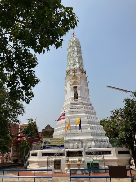 ワット・パークナムで黄金仏や大きな白い仏塔を見て、近くにあるワット・クン・チャンに向かって歩いていると、素敵な仏塔を見つけたので行ってみました。あまり有名ではなさそうなので後で調べてみると、かつては養豚場であったことから以前はワット・ムーとして知られていたそうです。今はそんな面影がありません。