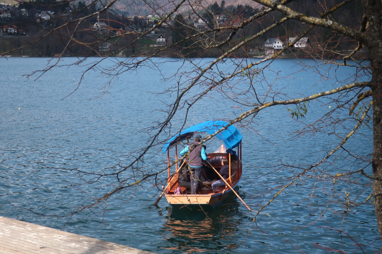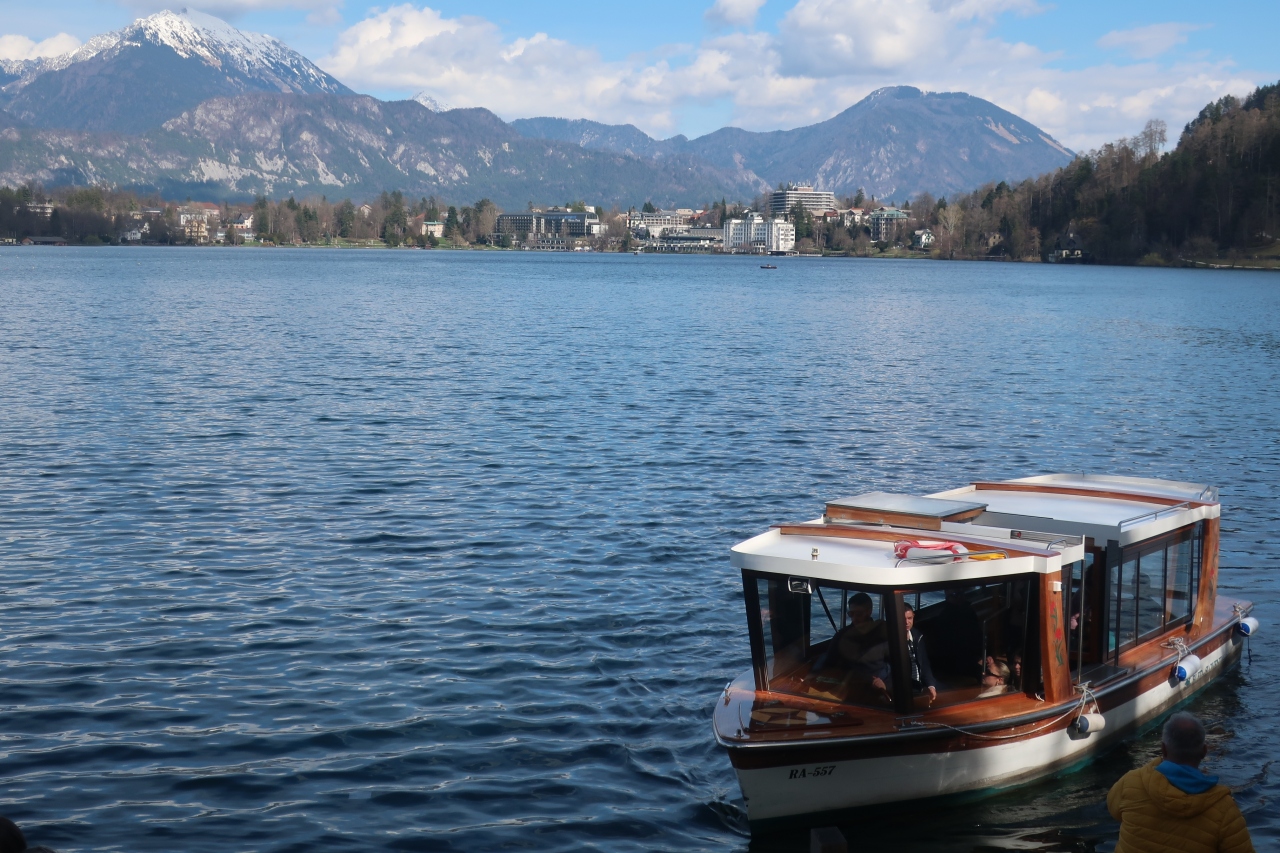ブレッド島へ行く手漕ぎ船をプレターナといい、ブレッドの湖畔から発着している。人数がそろえば順次発着するが、基本的には1時間に一本程度の運行。手漕ぎ船の隣にモータが付いた小型船もあり、こちらも1時間に一本程度の運行で、島で次の船を待つので滞在時間は1時間になる。料金は現金で払うか、ネットでバスチケットといっしょに買うこともできる。
