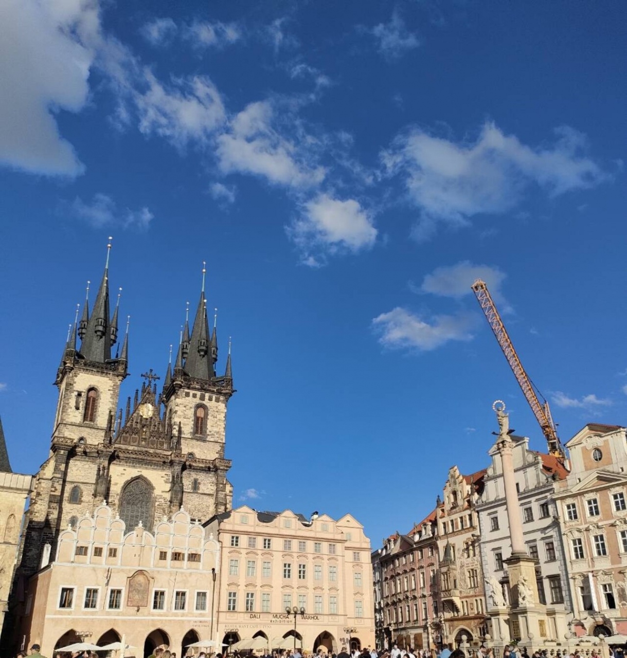 ティーン教会や天文時計など見どころがたくさんあるスポットで、ぐるりと見渡すと歴史的な建物だらけで圧倒されました。そして人もにぎわっているエリアでした。