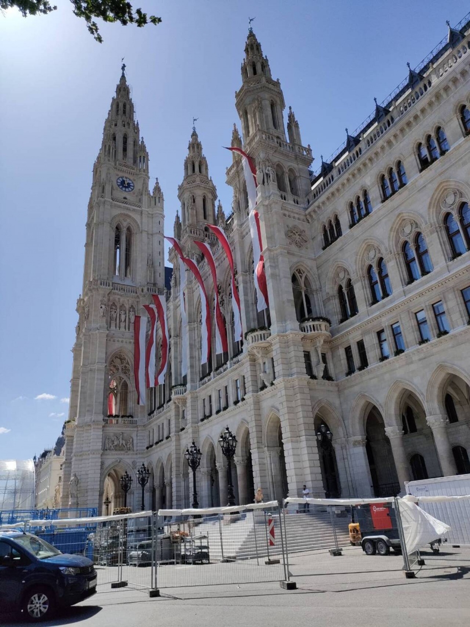 オーストリアの首都、ウィーンの市庁舎です。まるで教会や宮殿のような佇まいで、大変美しい姿をしていました。