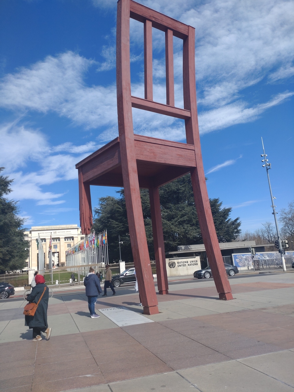 ジュネーブの国際連合本部の前にある巨大なモニュメントで、ジュネーブ観光の際にはマストとなる場所です。