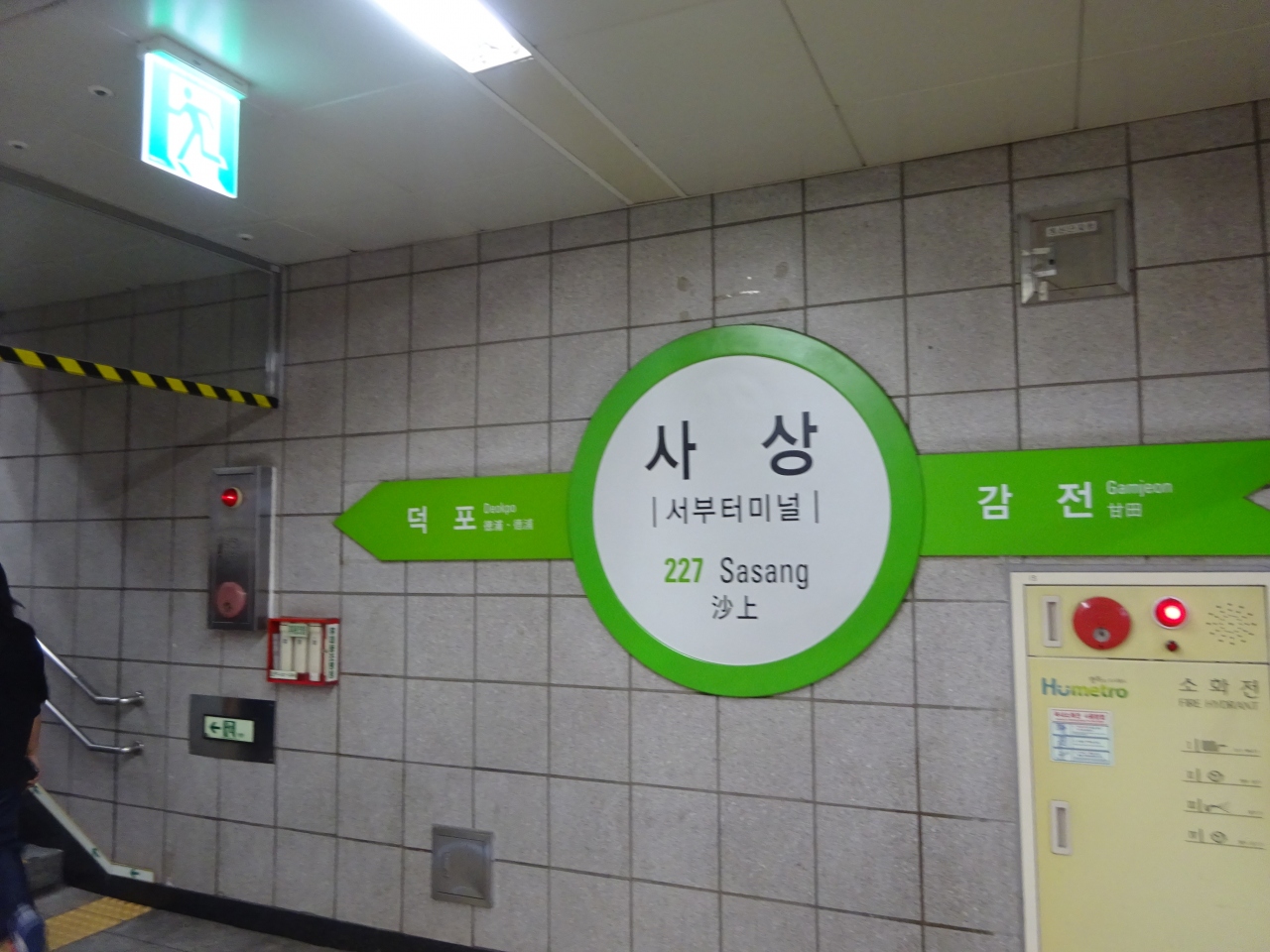 釜山の沙上駅です。乗り換えの駅というイメージです。釜山の国際空港から四面等の町中へ行くのに乗り換えました。空港から沙上駅までは、近いです。コンビニや自動販売機等もありますので、便利です。乗り換えも難しくありません。