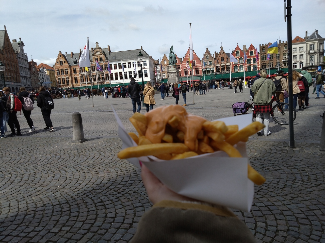 ブルージュの観光の中心といえばココ。常に観光客があふれていて賑やかです。馬車ツアーの発着地にもなっていました。四方を歴史ある建物が囲んでいて美しい場所でした。フリッツやワッフルの屋台も出ていてテイクアウトが楽しい。
