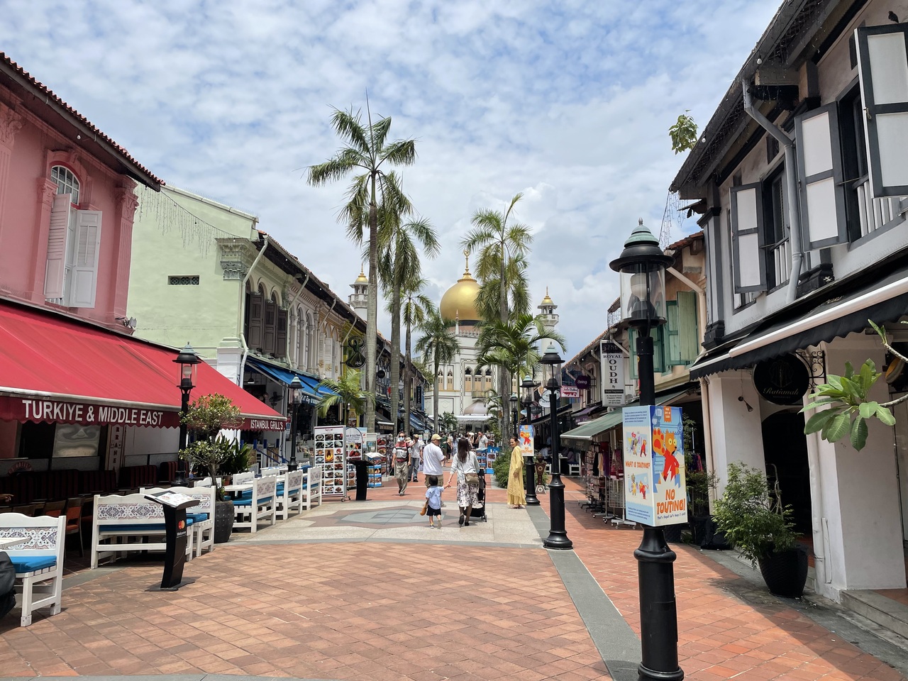 シンガポール最大のイスラム教寺院サルタンモスクから近いアラブストリートは、屋根付きの歩道があったりして店がとても近くに感じられる。絨毯や洋服の店が多かったです。