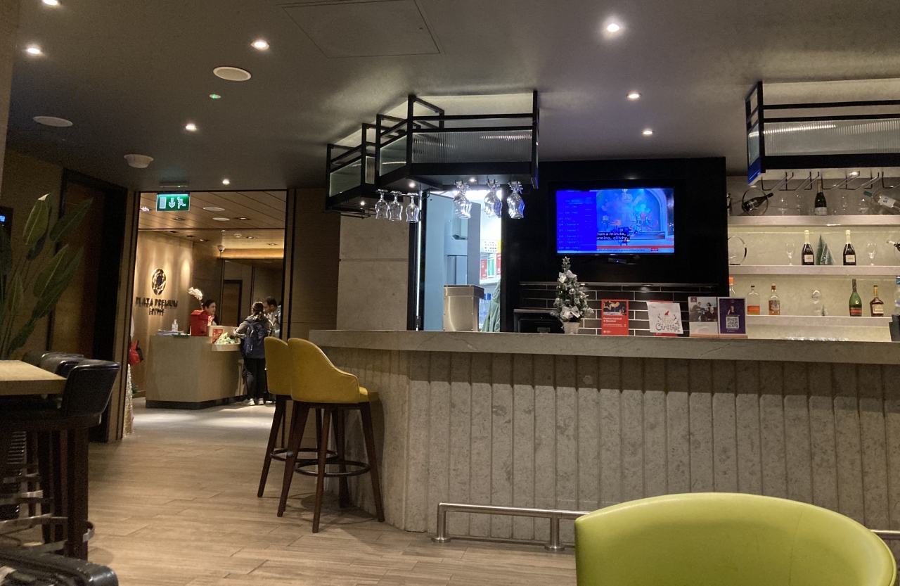 料理の近くにはソフトドリンクしか置いていないので、ノンアルラウンジかと思ったら、ビールを持って歩いている人を発見。少し離れたところにバーがあり、アルコール類はそちらに取りにいかなければならない。