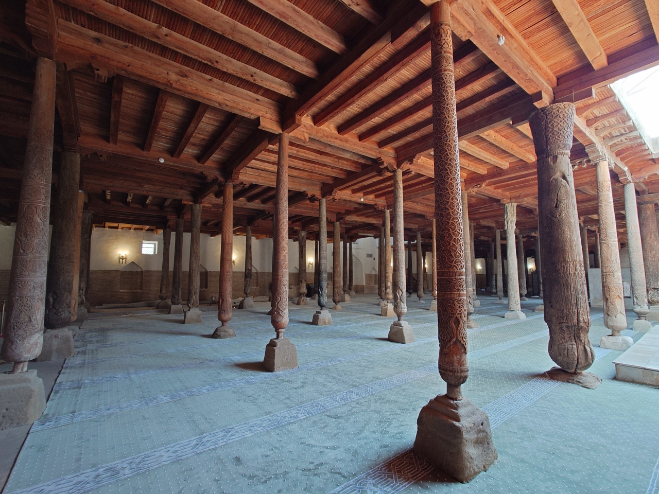 低い天井を支える沢山の木造の柱が有名なモスクです。柱の木彫は細かくて見ごたえはありましたが、空間として特に面白い感じはなかったです。柱はひび割れそうなものなど保存状態が良くないものもありました。出入り口では帽子がたくさん売られてました。